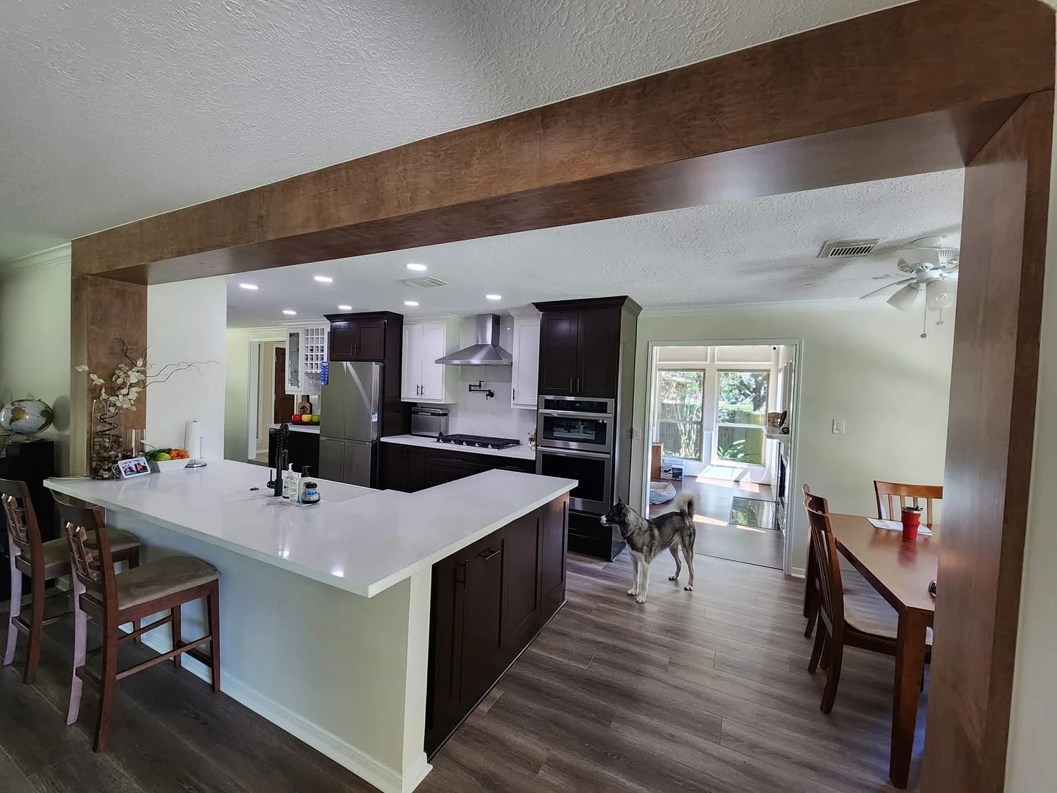 We were referred to Josh through friends that were using KinPro to update their kitchen, so we reached out and set-up a meeting. From the second Josh arrived he felt like a friend. He seemed to be very down to earth, honest and trustworthy. We ended up using Josh to slowly update our home over the last couple of years. Josh and his contractors have done a guest bath renovation, half bath update, playroom and upstairs kitchen remodel, pantry remodel, fireplace renovation, added brick to our entry ceiling, full roof repair, and the most exciting was a full kitchen remodel. I can honestly say throughout this process Josh has truly become a friend of the family, and someone I would highly recommend. He makes sure the job site stays clean and will even come and vacuum himself if it is not up to his standards. The contractors have always been very professional and have continually done a great job. As with any renovation, hicupps are expected, but Josh was always professional and came with solutions to fix any issues that arose. Along side Josh was Darci White doing our designs, decorating, ordering everything from trinkets, to lighting and furniture while keeping everything on track with her organizational skills and attention to every detail. Remodeling and all the decisions can be overwhelming and Darci was a lifesaver! In addition to designing and decorating all our projects with Josh she has refreshed multiple rooms in our home including the office and kids bedrooms. Our next project will be a pool bath addition and expanded laundry room and I know that we are in good hands with KinPro and Darci White.
